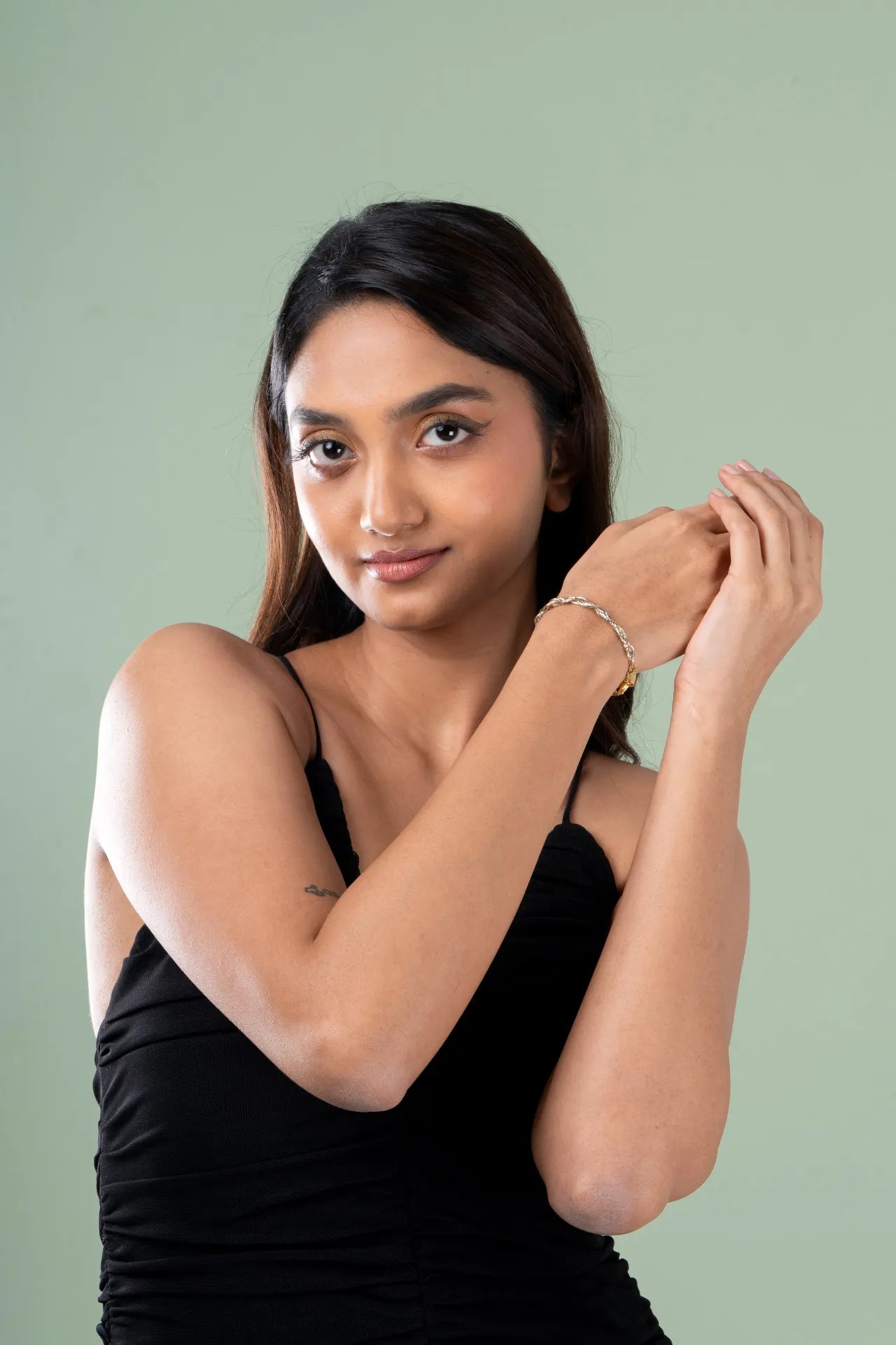 Compliment a blush pink or lavender sharara with a delicate rose gold bracelet featuring intricate twisted design for a romantic touch.