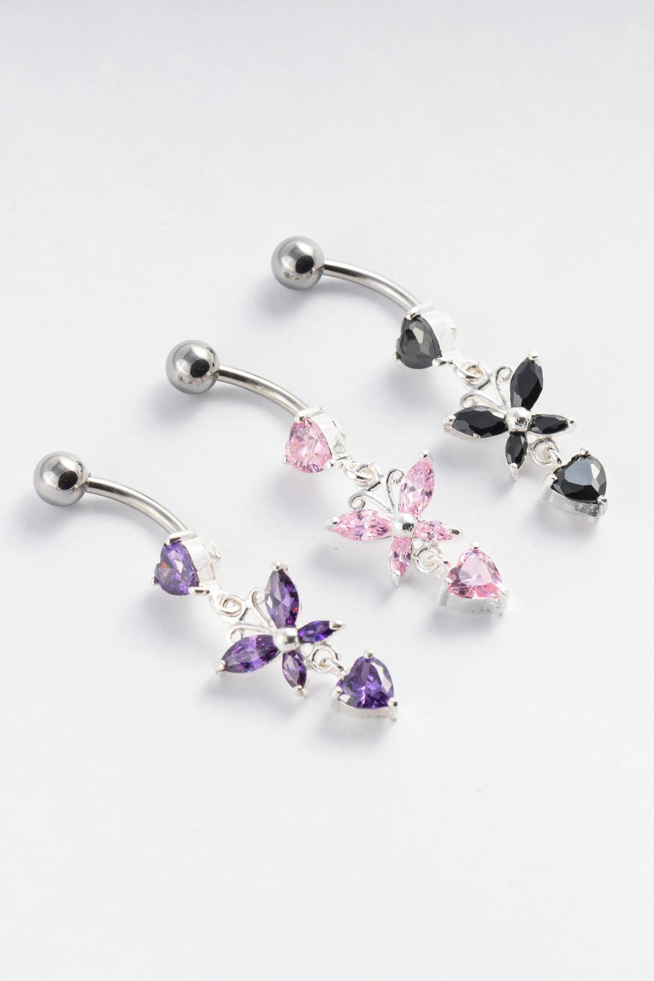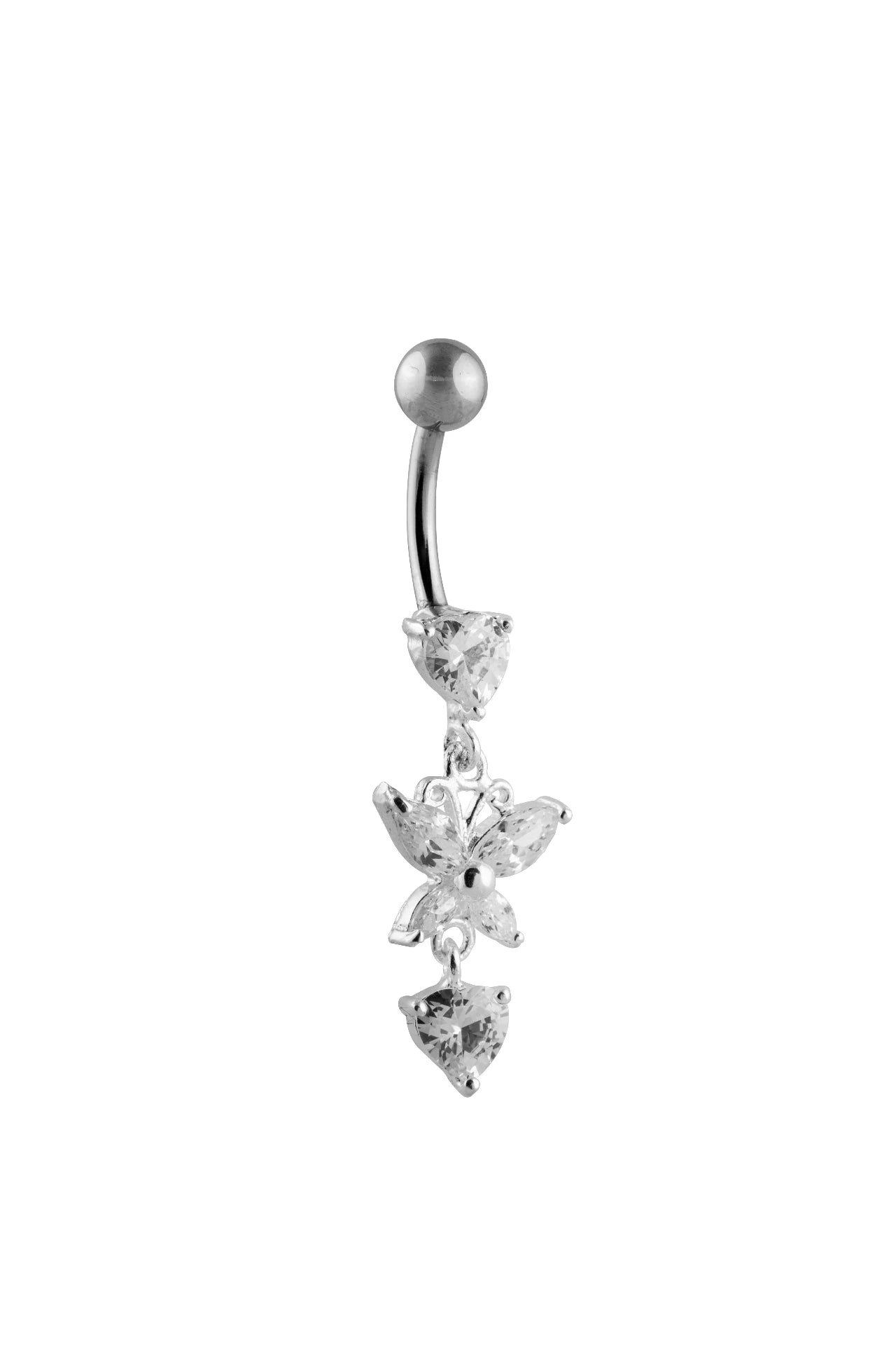 Bloom with beauty with the Alexis Belly Button Ring. Crafted with precision from 92.5 sterling silver, this piece features cubic zirconia stones that blossom like a flower, adding a touch of natural elegance to your look.