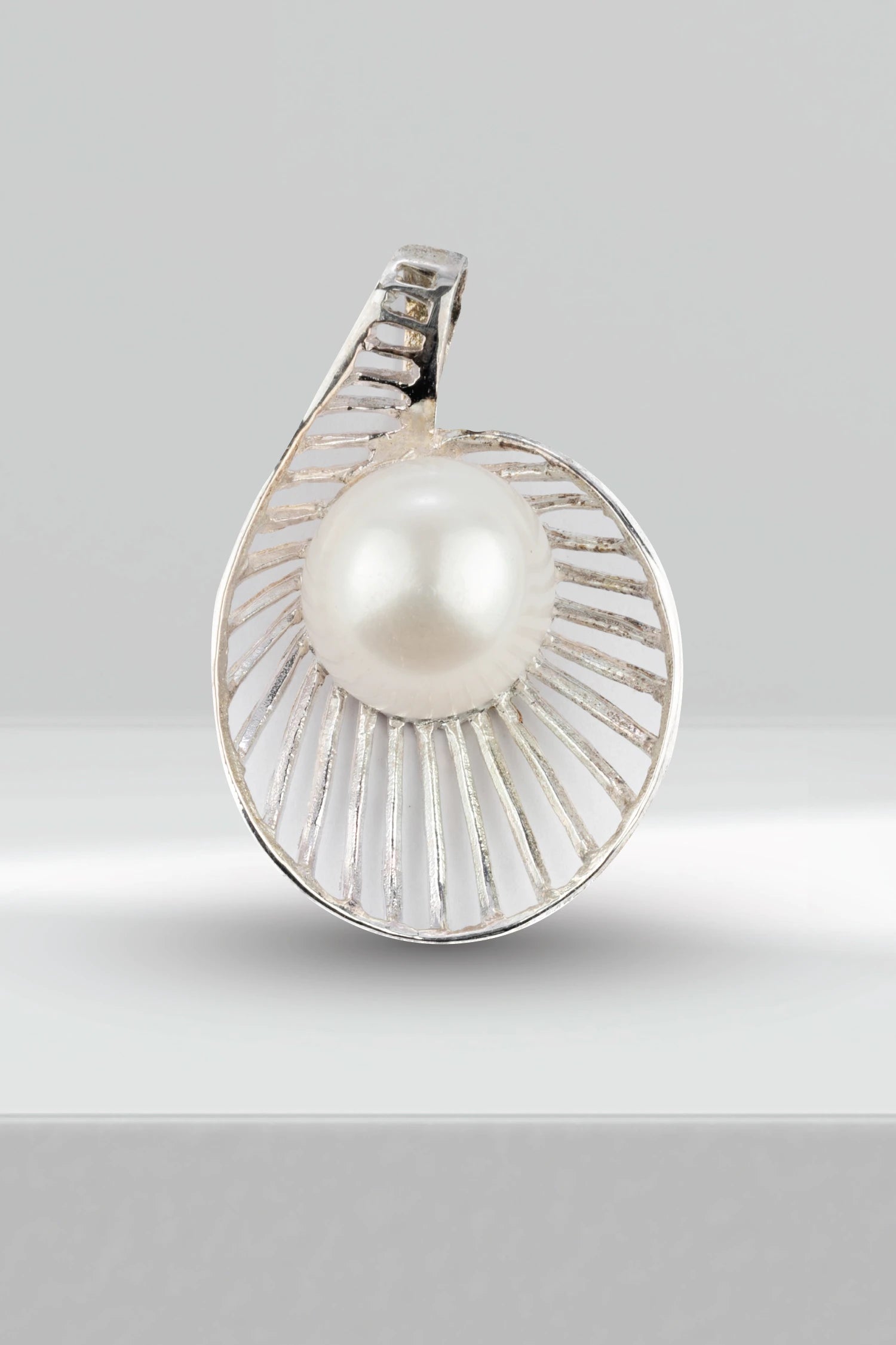 Adorn yourself with the Ava Pearl Silver Pendant, where simplicity meets sophistication. This design features a single, lustrous pearl nestled in a rounded sterling silver frame with elegant line ridges cut out, crafted from 92.5% pure sterling silver.