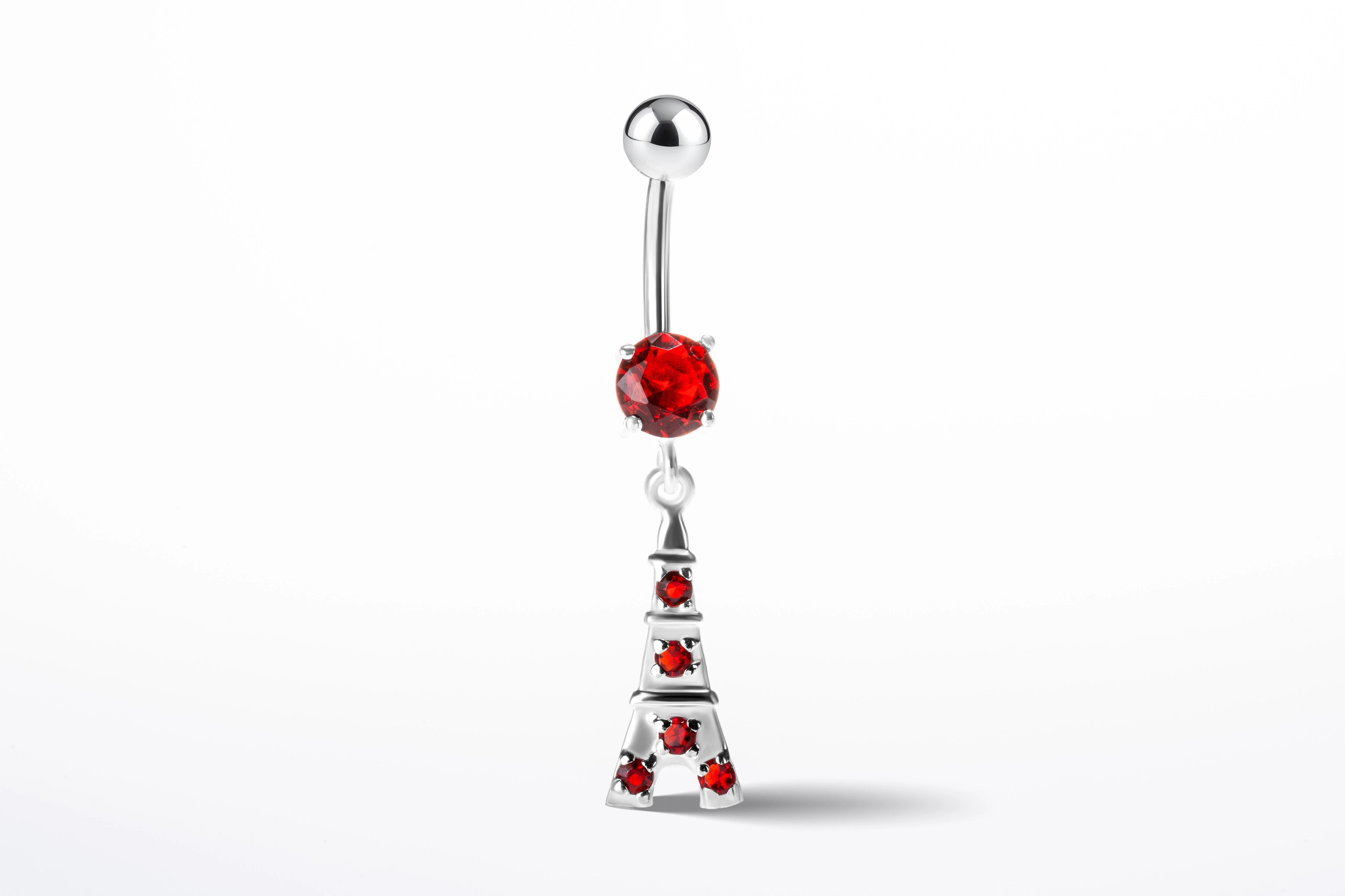 The Monde Belly Button Ring is defined by its architectural charm, inspired by clean lines and vertical structure. The elongated pendant detail creates a striking focal point, while embedded zirconia stones add subtle texture along the form.