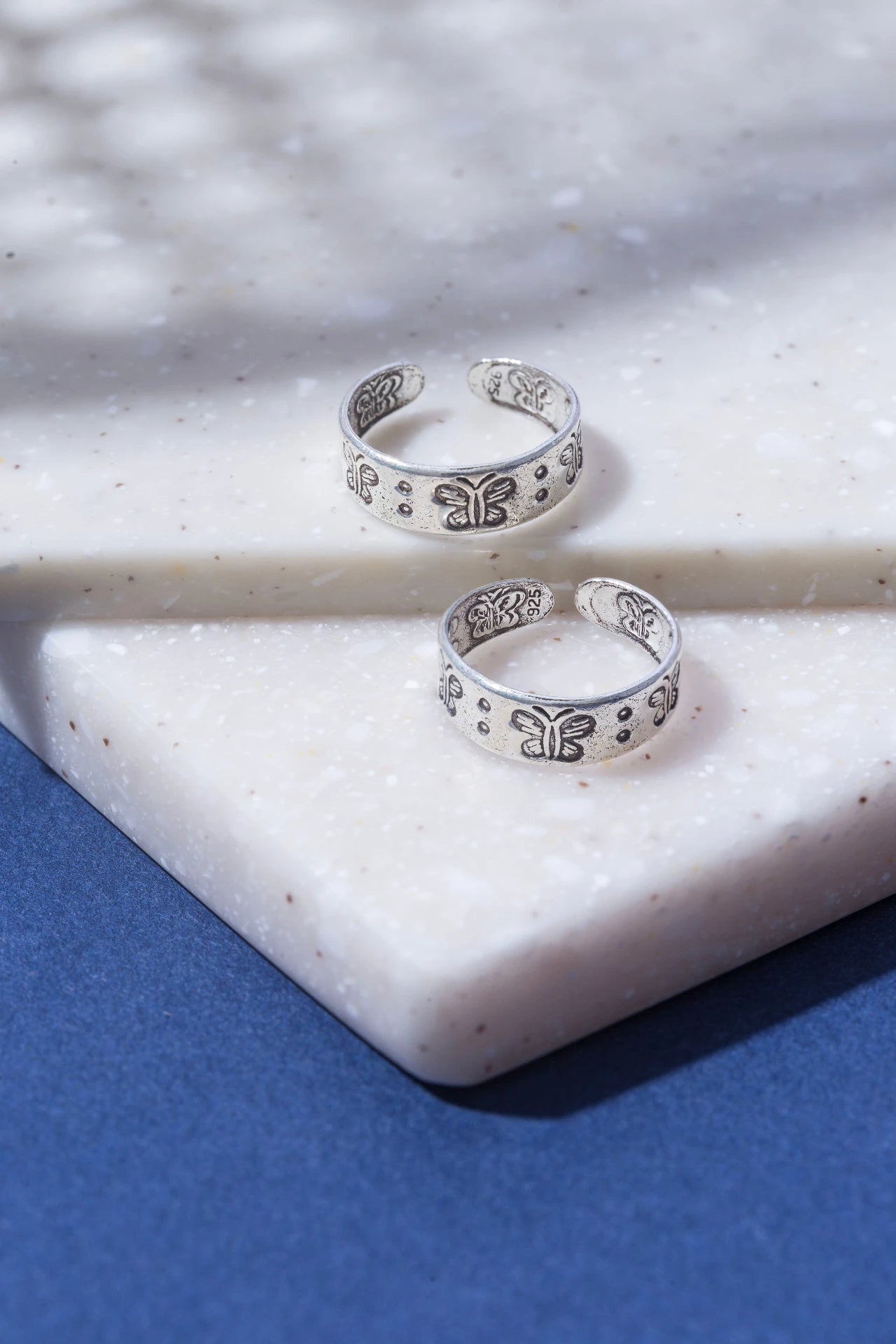 Crafted from 92.5 sterling silver, the Butterfly Bloom Silver Toe Ring brings the enchanting beauty of butterflies to life.