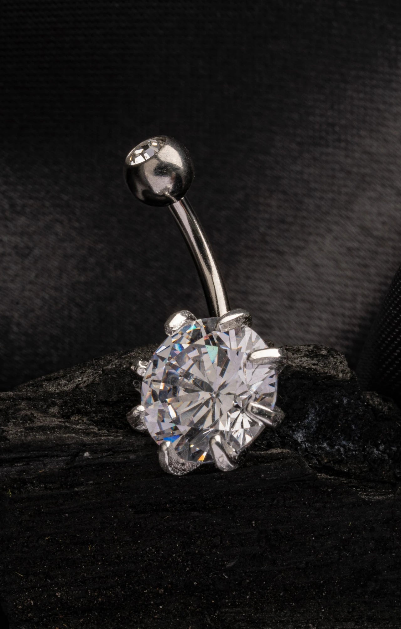Shine endlessly with the Eternal Charm navel ring, featuring a flawless round solitaire zirconia stone.