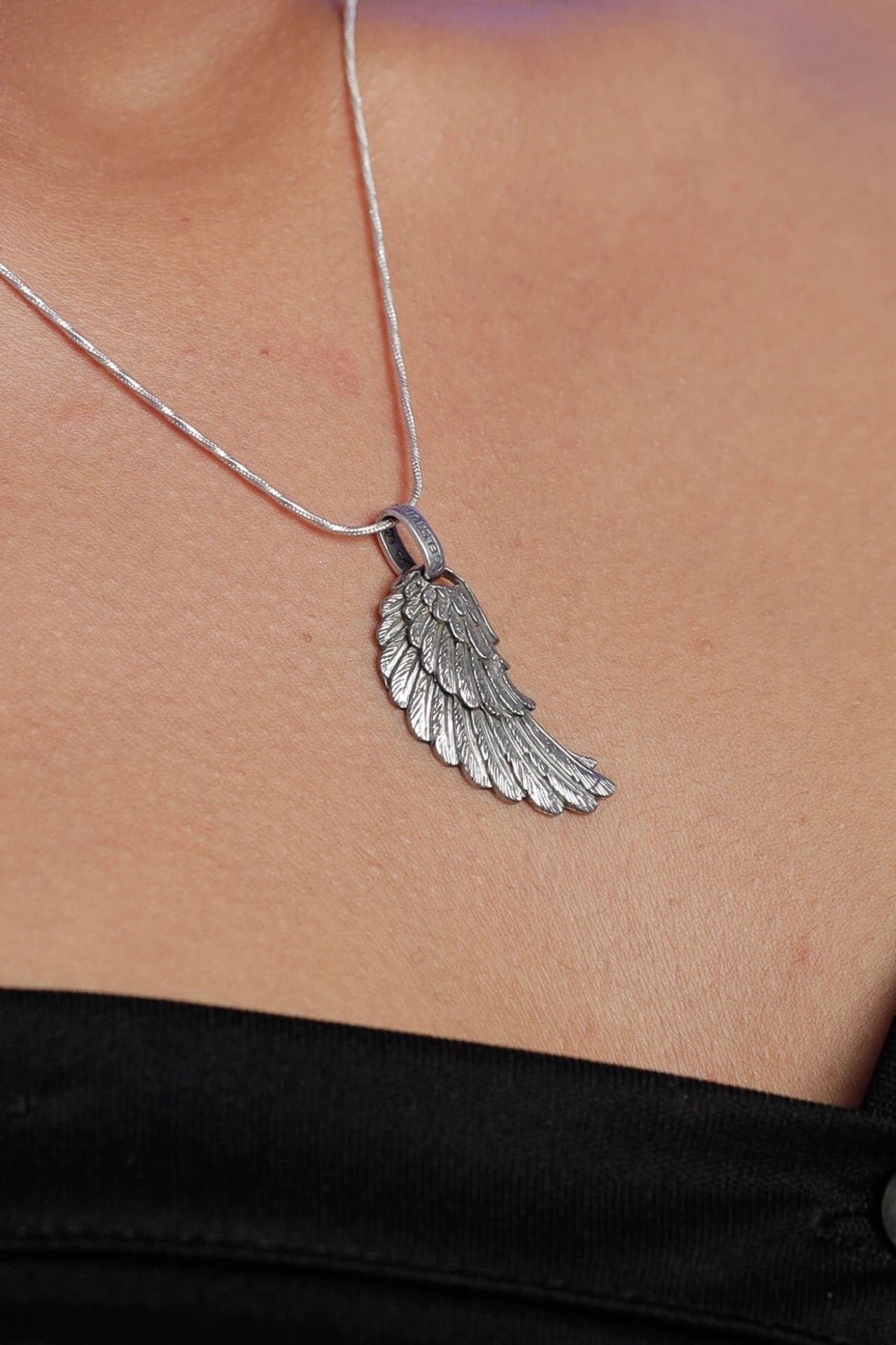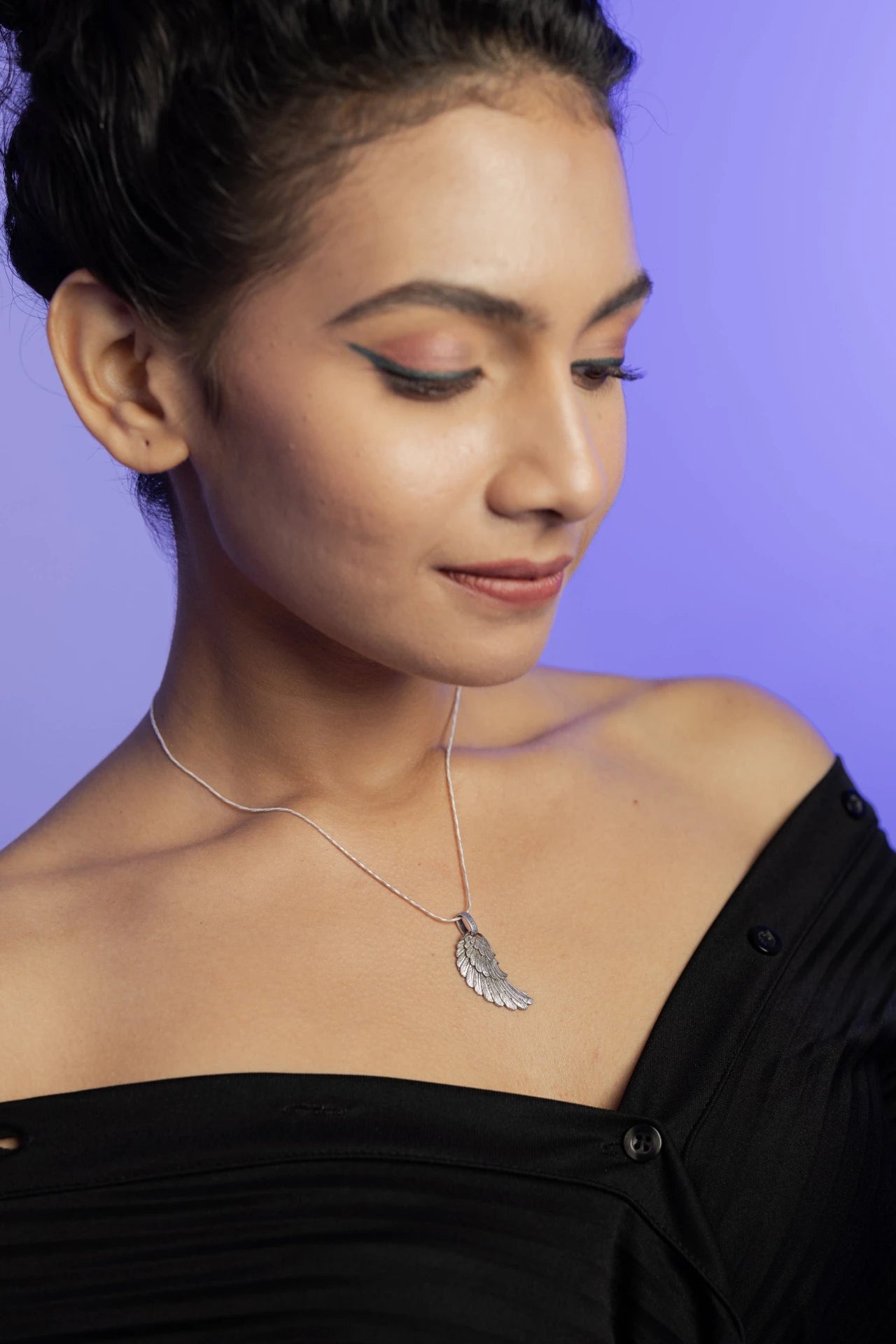 Soar to new heights with the Helena’s Wing Silver Pendant. This striking piece, meticulously crafted from 92.5% pure sterling silver, captures the delicate beauty of a single wing with detailed feathering.