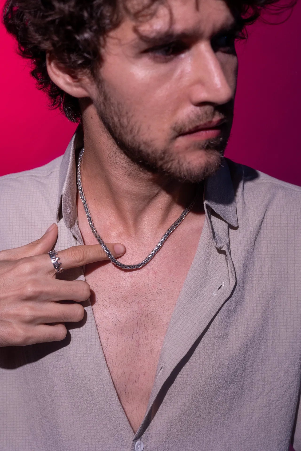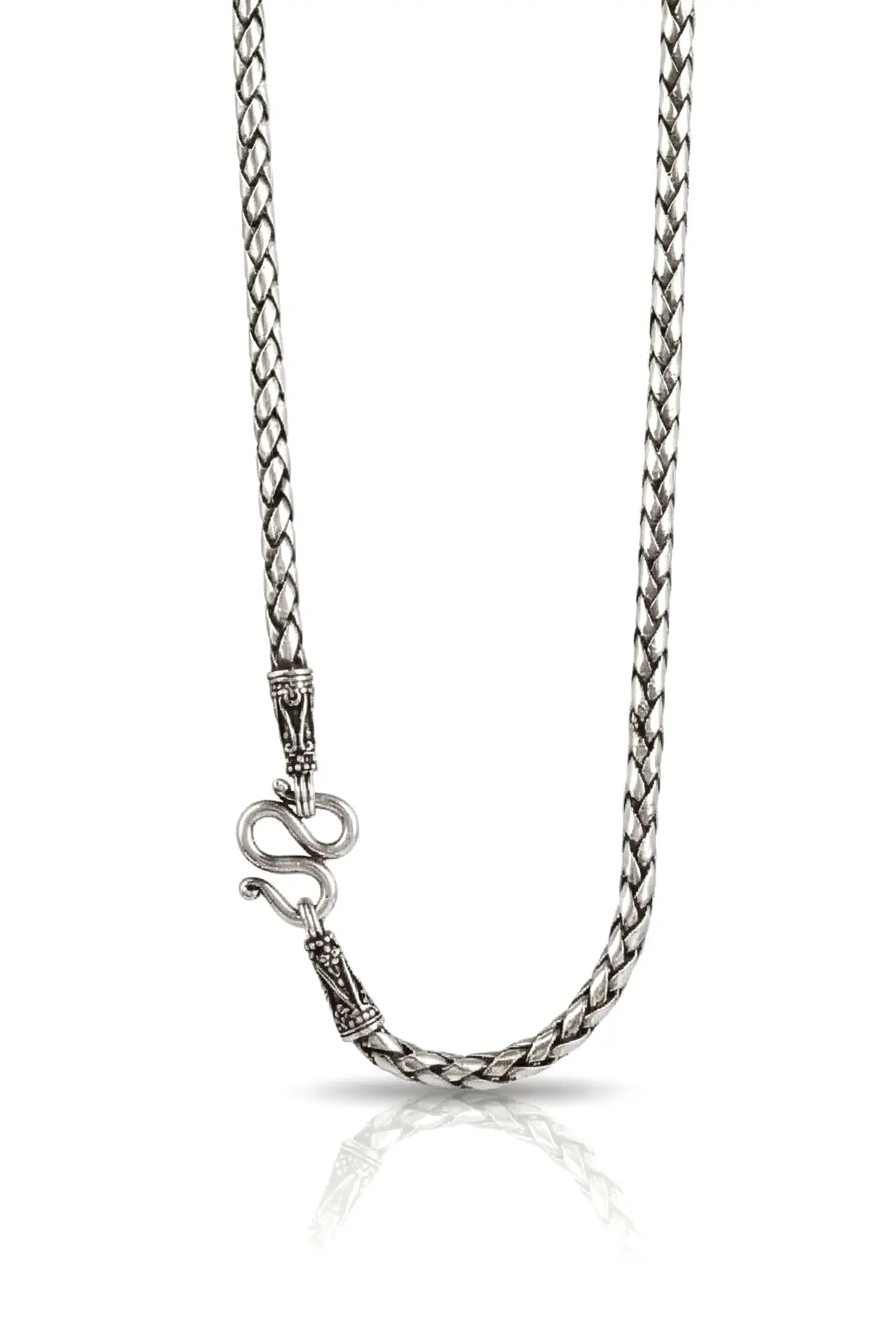 The Obsidian Wave Silver Chain captures the essence of modern minimalism with its rhythmic design, reminiscent of flowing waves. Finished in polished 92.5 silver, this chain adds a touch of subtle sophistication to any ensemble, enhancing your personal style.
