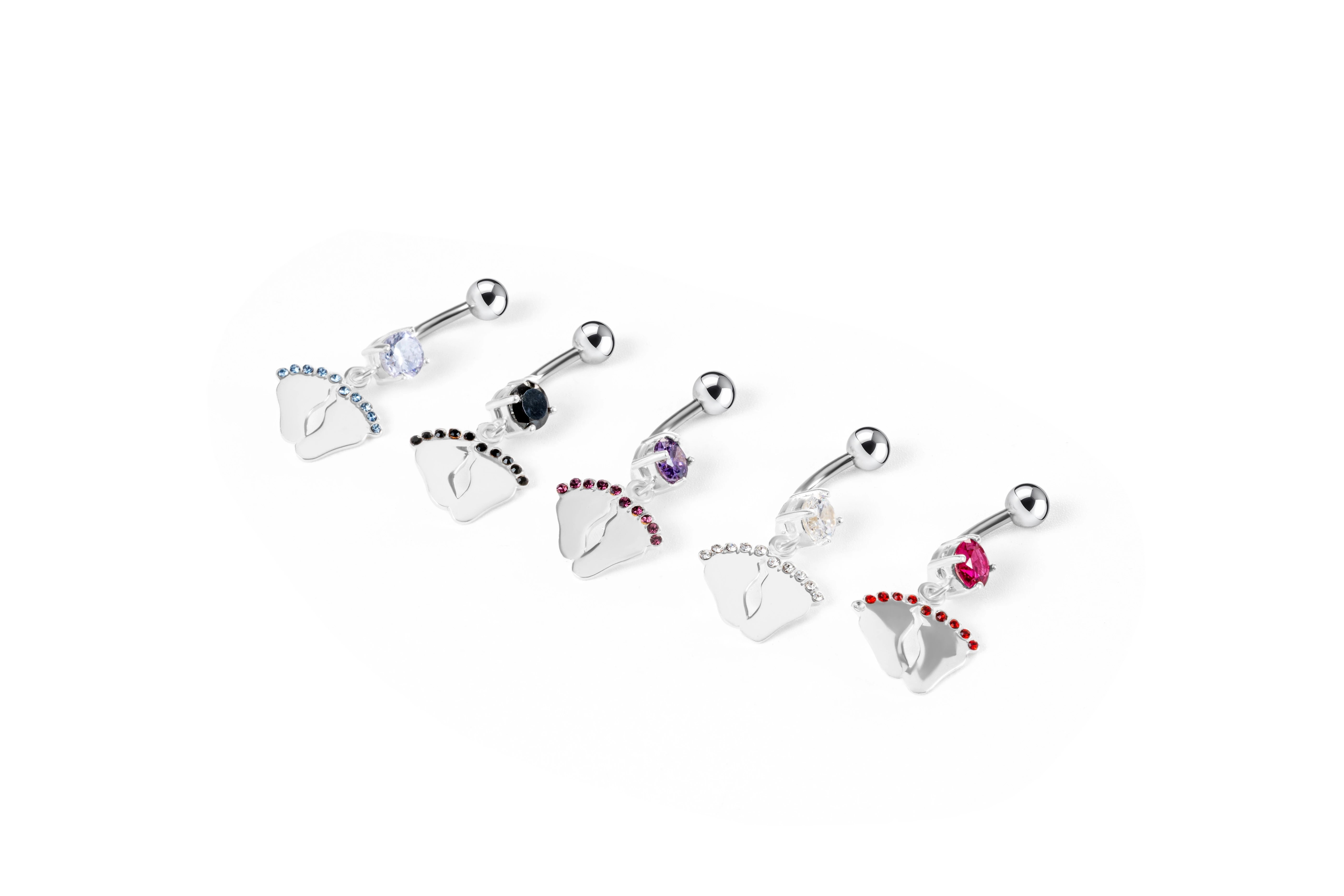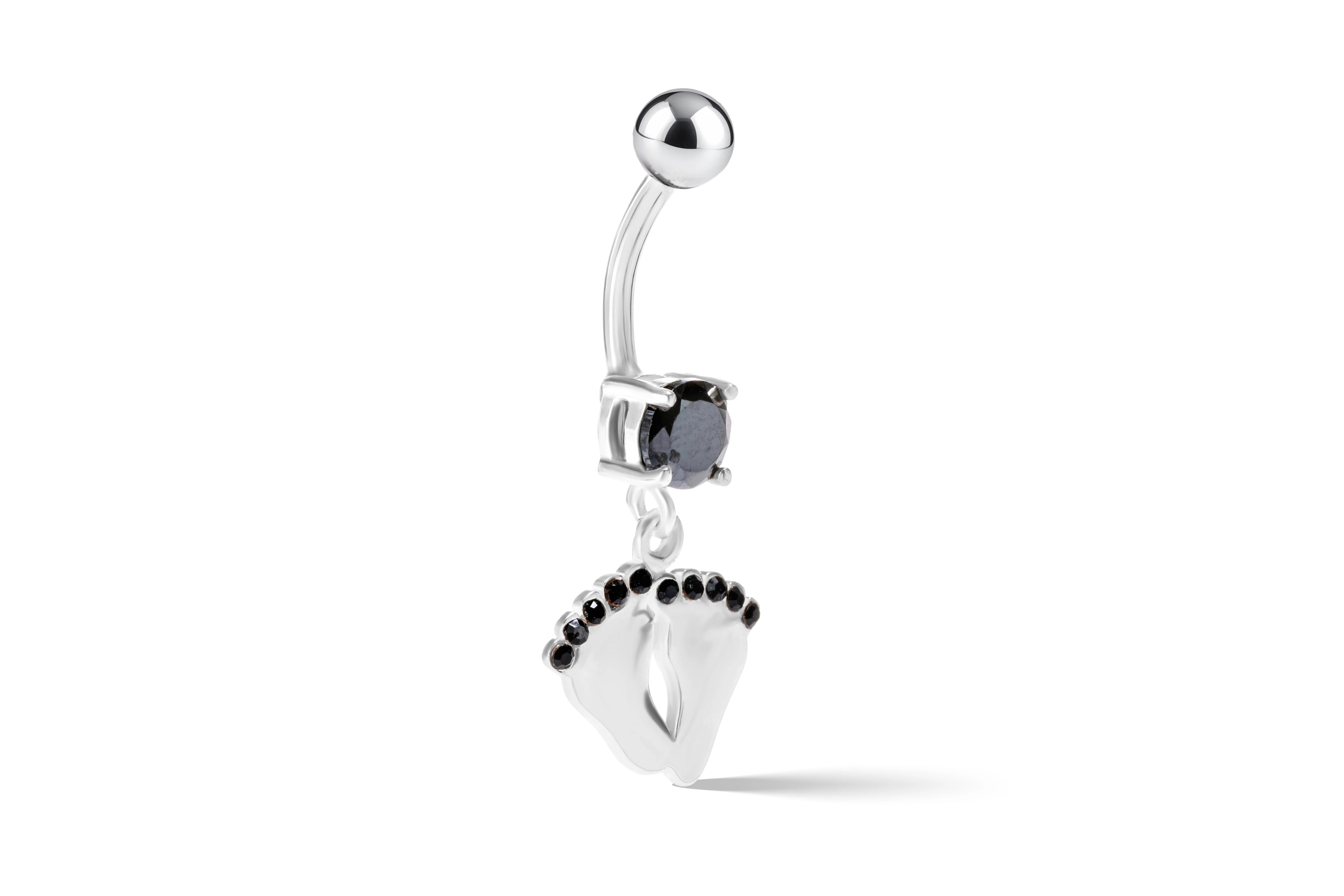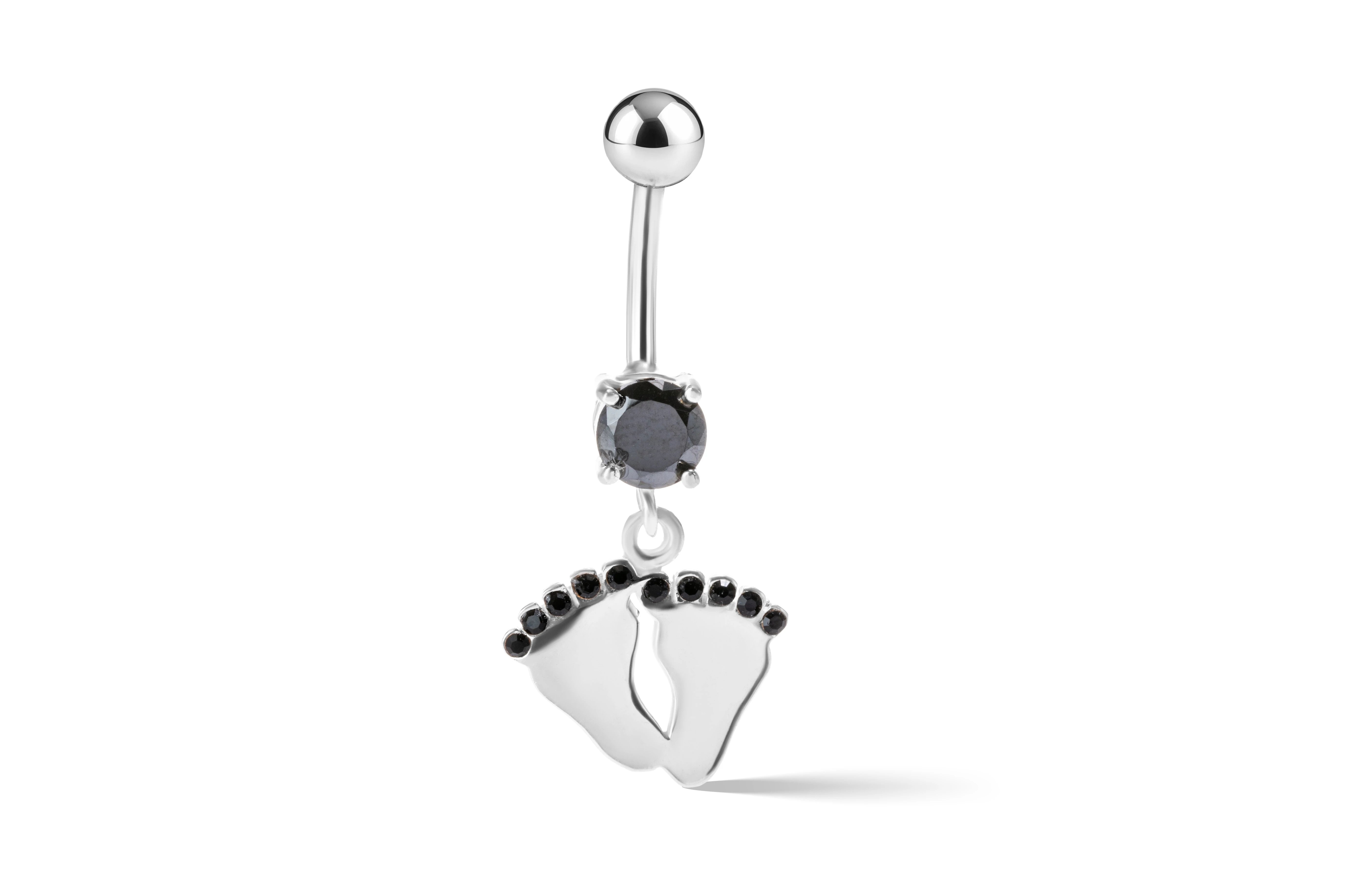 The Pavana features a delicate footprint motif suspended beneath a single zirconia accent, creating a composition that feels intimate and quietly symbolic. The charm is finely contoured, with subtle texturing along the edges that adds depth without overwhelming the form.