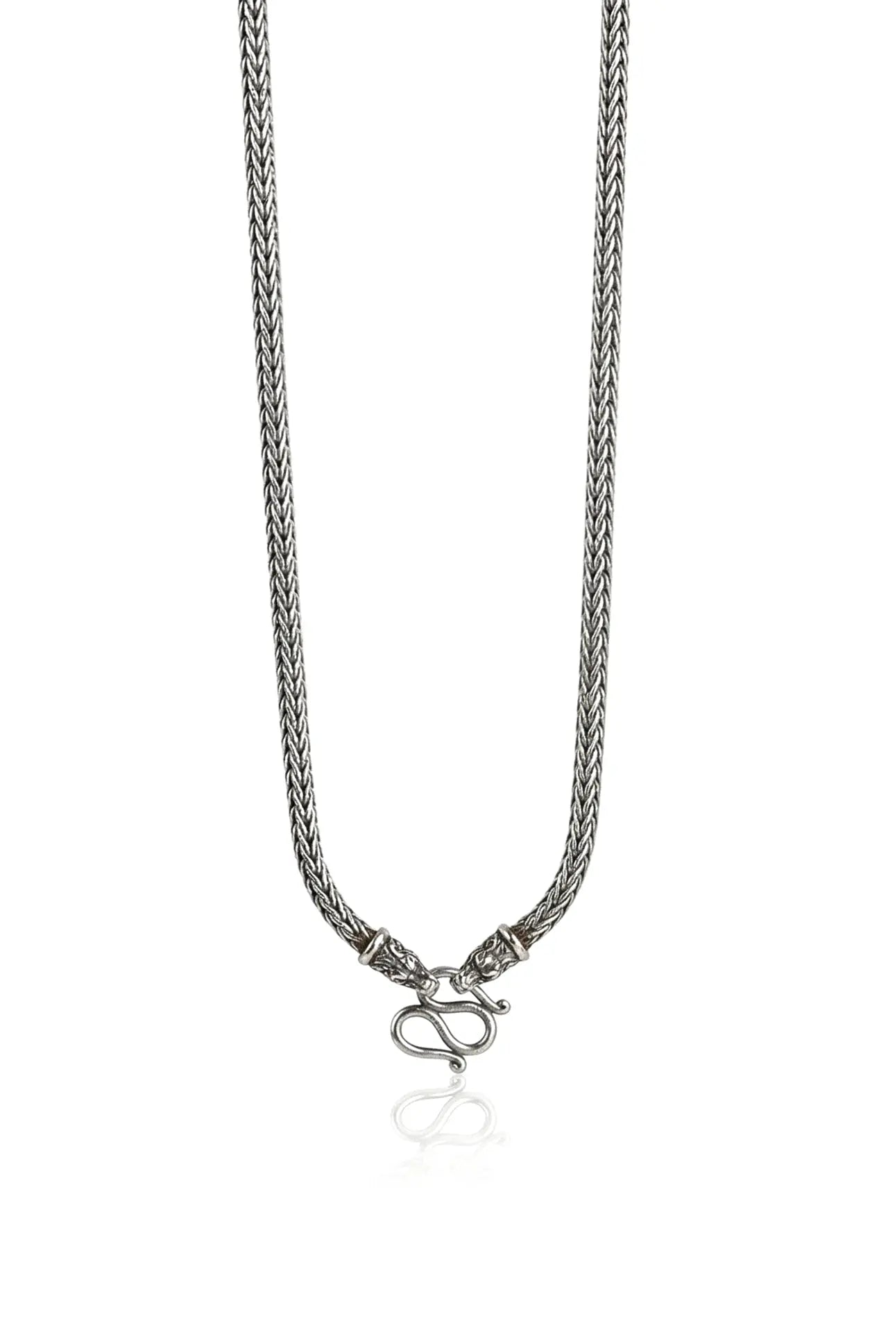 Refined yet rugged, the Sarva Men’s Silver Chainis a nod to ancient craftsmanship and modern masculinity. Its sleek, serpentine weave flows with quiet power, finished with traditional hooks that speak to a warrior’s spirit. Built to last and designed to elevate, this chain is for those who carry legacy in their stride and confidence in their silence.